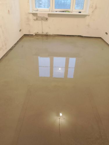 Подготовим поверхность: заделаем трещины и прогрунтуем поверхность. Установим маяки и нальём полы. Будет пыльно и шумно. Работа займет от 3 часов. закладывайте 4–6 часов на высыхание пола после заливки.