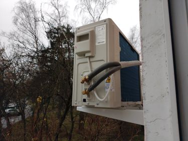 Установим внешний и внутренний блоки, проложим открытую магистраль до 3 м, задуем отверстия монтажной пеной, сделаем короб в помещении, проверим давление фреона и подключим кондиционер.