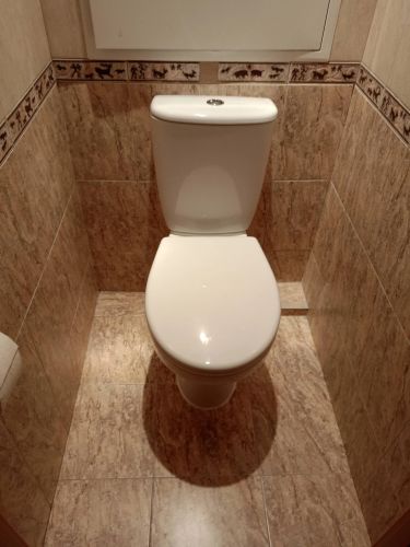 Подключим унитаз к воде и канализации, соберём и установим бачок. Убедимся, что всё работает, и обработаем швы герметиком. Работа займёт 1,5–2 часа. Будем отключать воду.